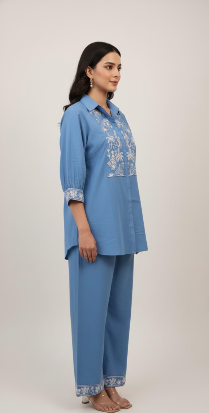 Cotton co-ord set with classic collar — chic Indo-Western set for women.