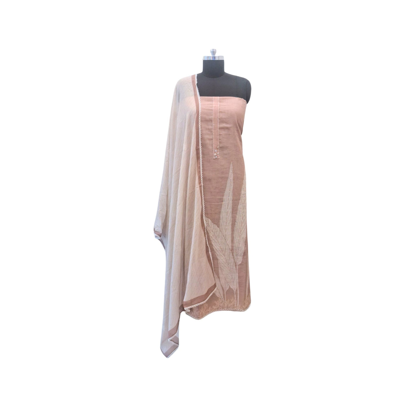 LINEN SUIT WITH NATURAL LEAF MOTIF