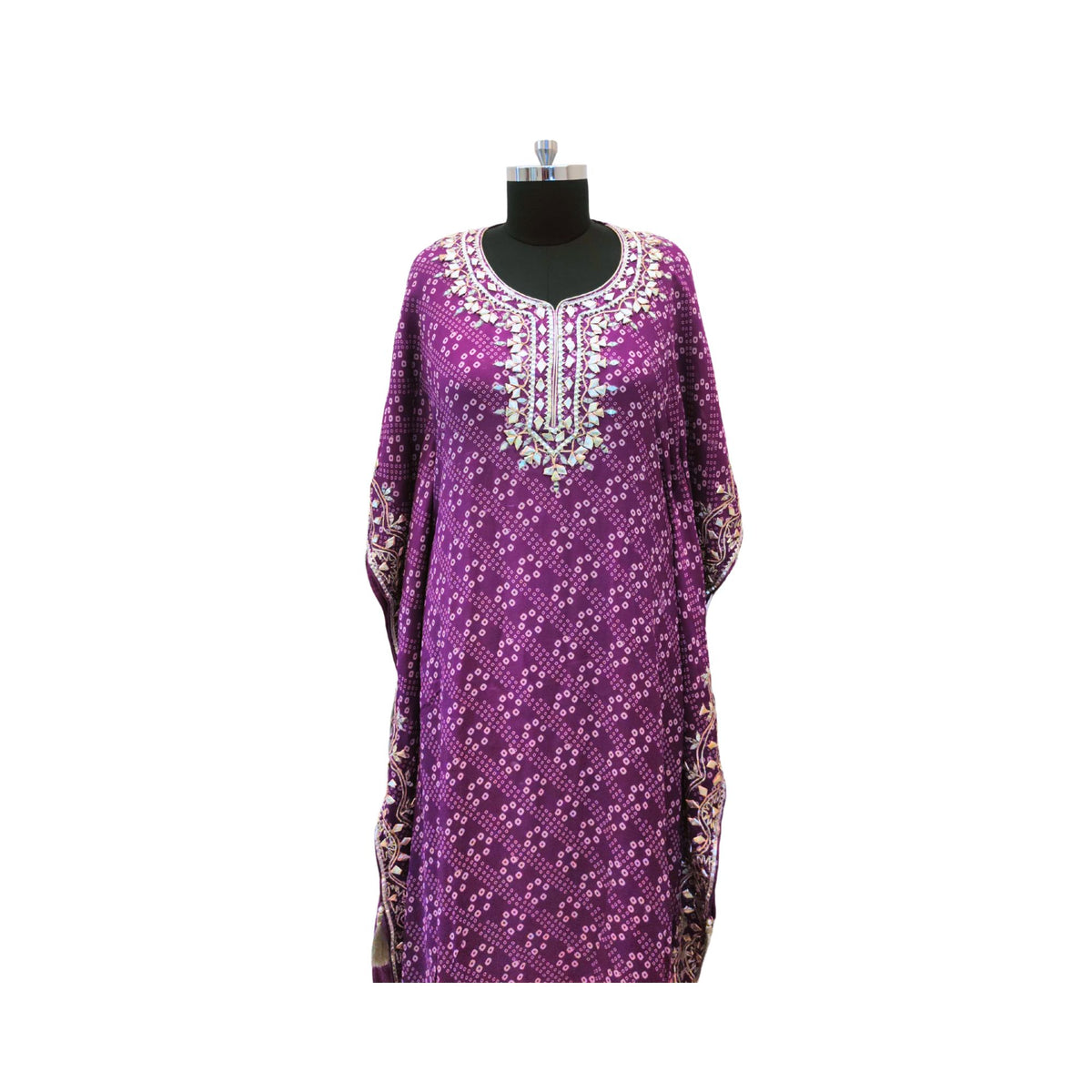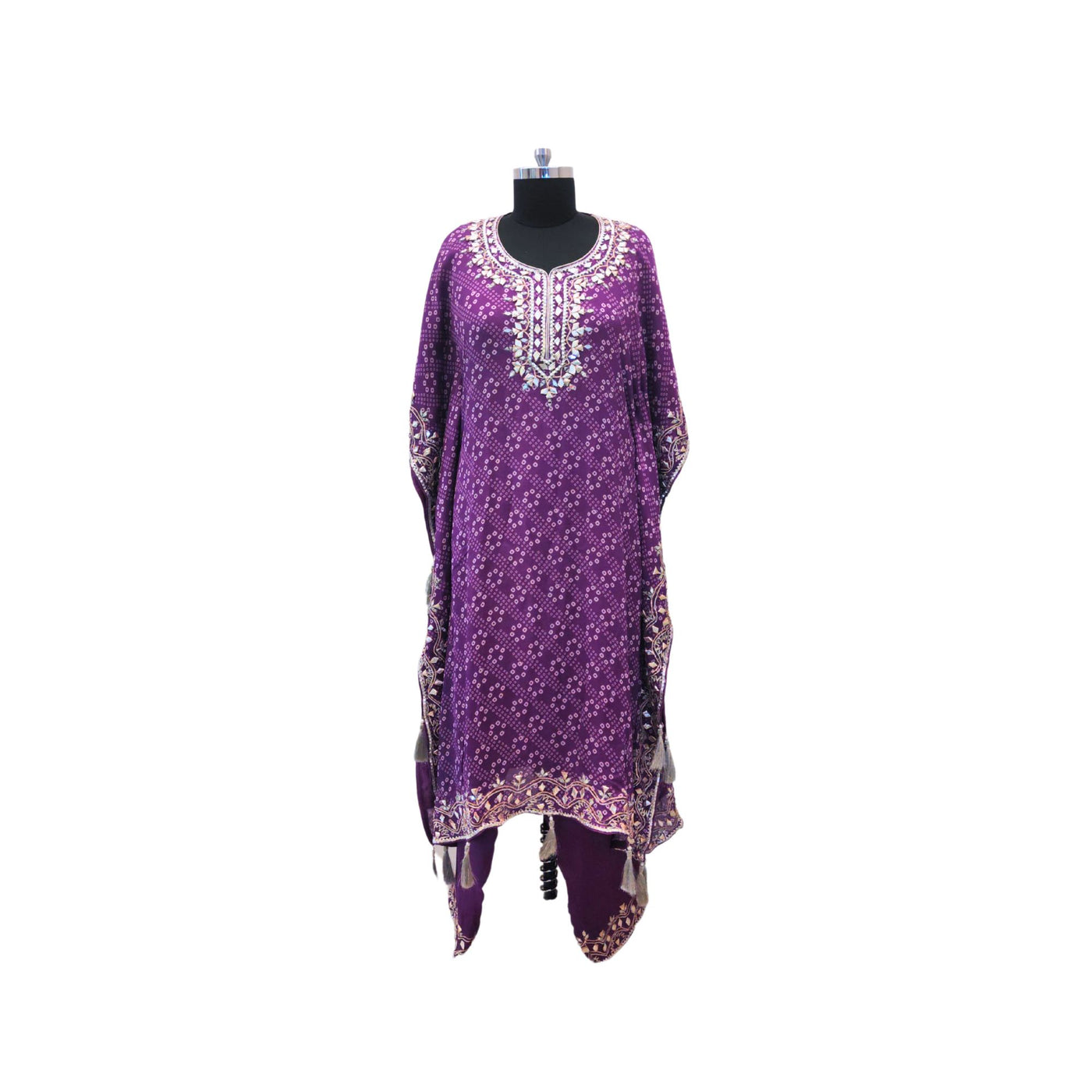 CHINNON KAFTAN WITH STRAIGHT PANTS, FEATURES GOTA PATTI YOKE WITH BANDHANI DIGITAL PRINT