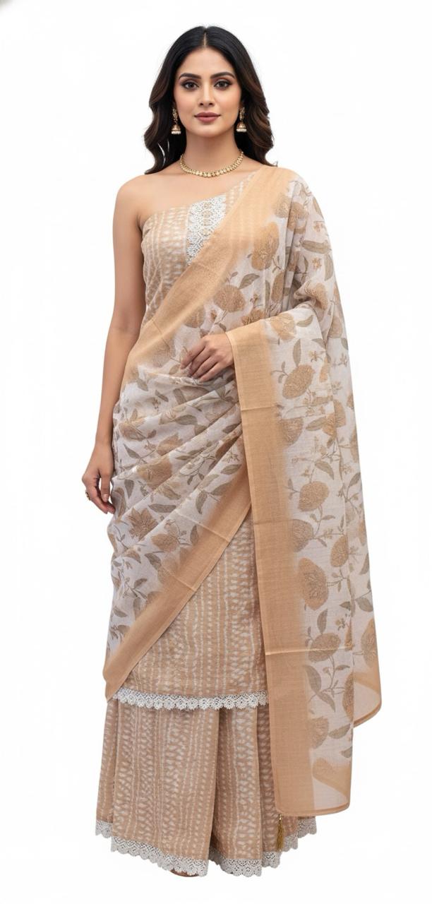 LINEN SUIT WITH MIRROR AND CROCHET WORK