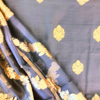 MUNGA SILK SUIT WITH GOLDEN JARI WORK - NAVY BLUE / FREE / 338979