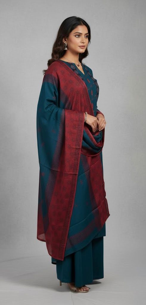 COTTON SUIT WITH BLOCK PRINT YOKE