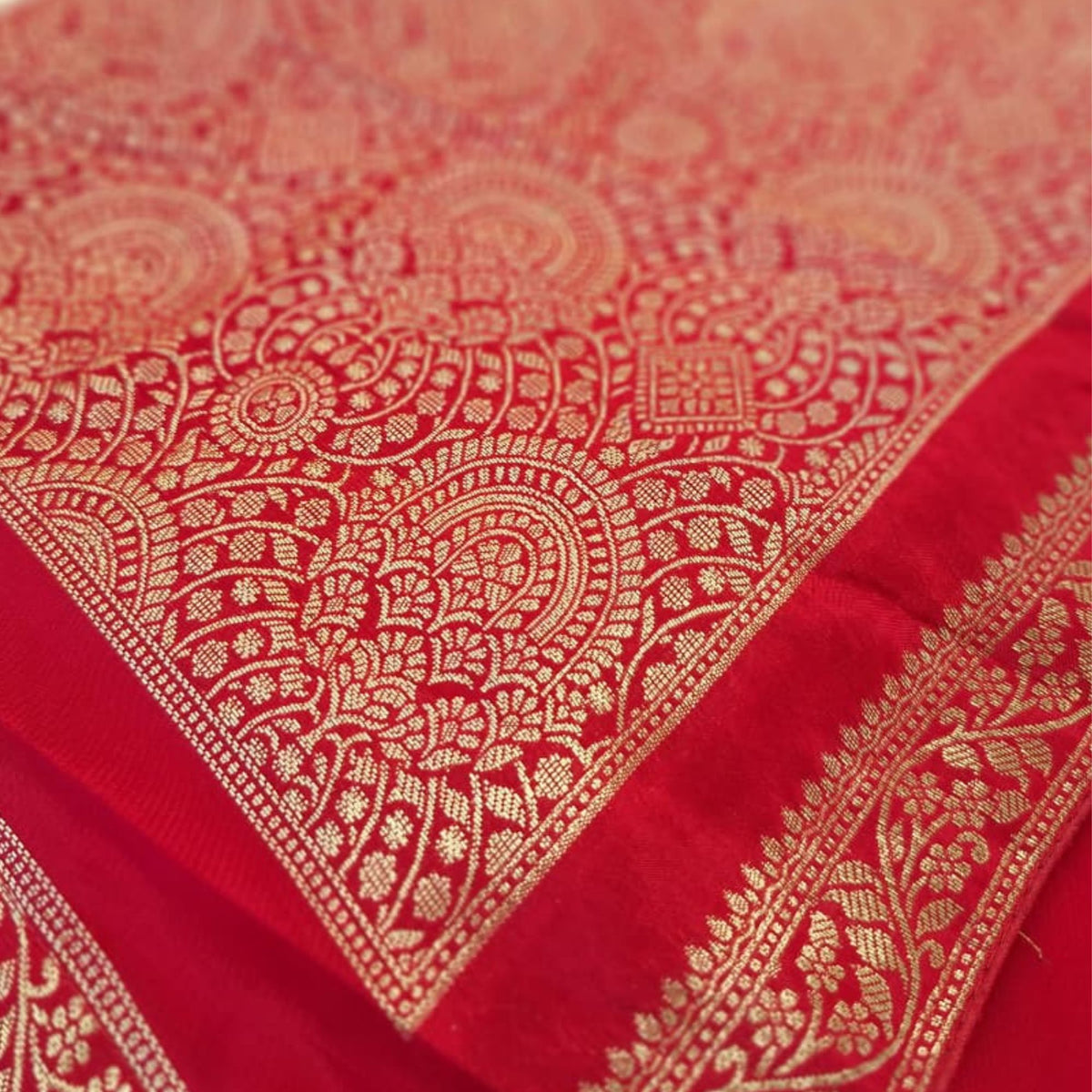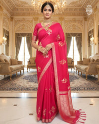ITALIAN CRAPE SAREE WITH HEAVY ZARI PALLU, ADORNED WITH MOTIFS