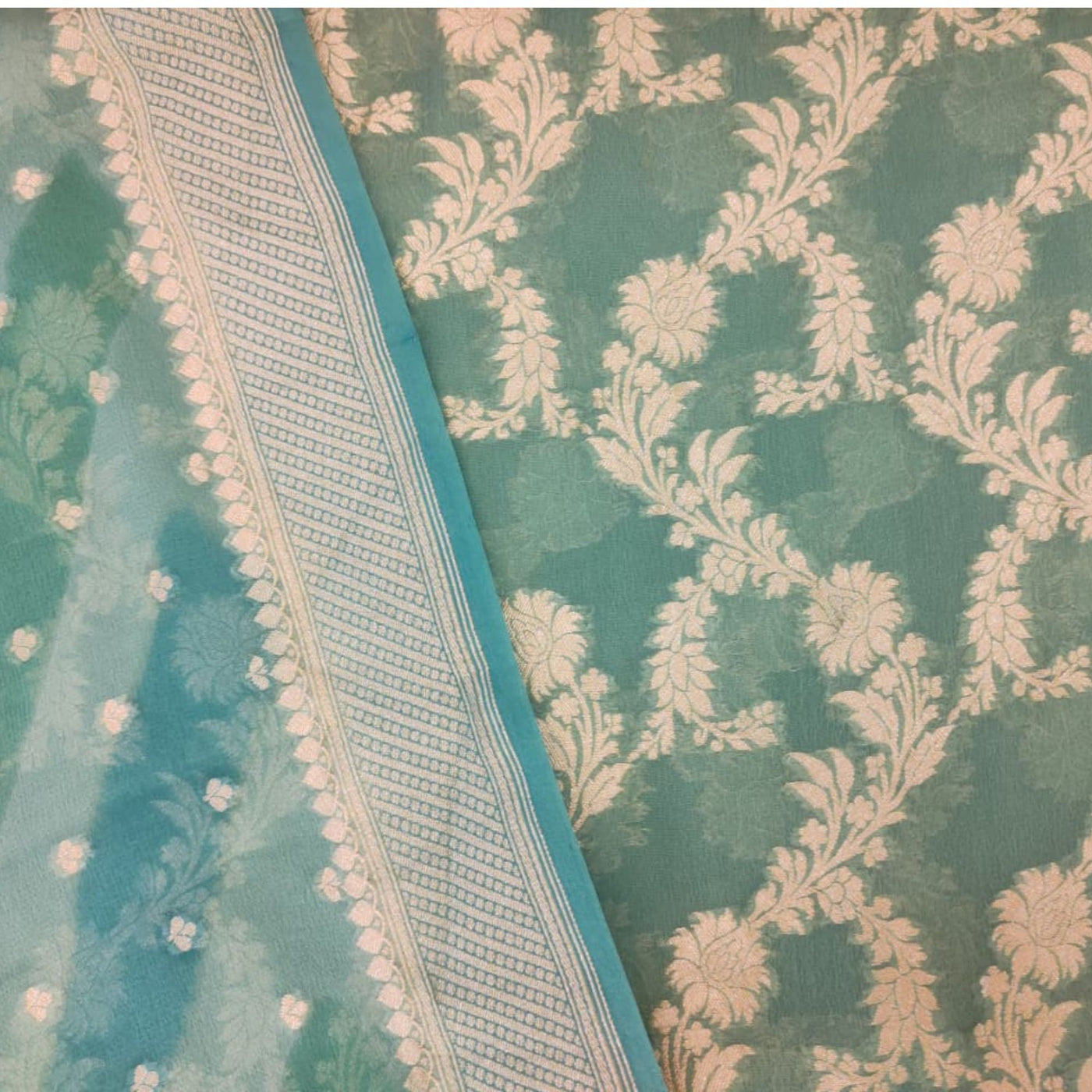 KHADDI GEORGETTE UNSTITCH SUIT HIGHLIGHT WITH AADA JAL WEAVING