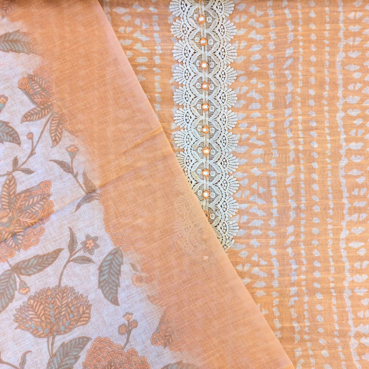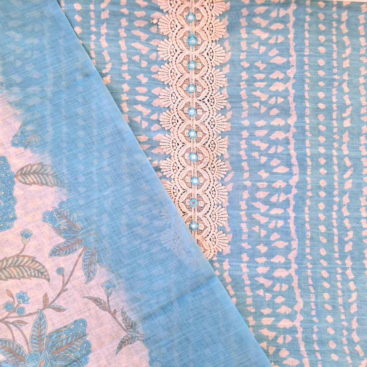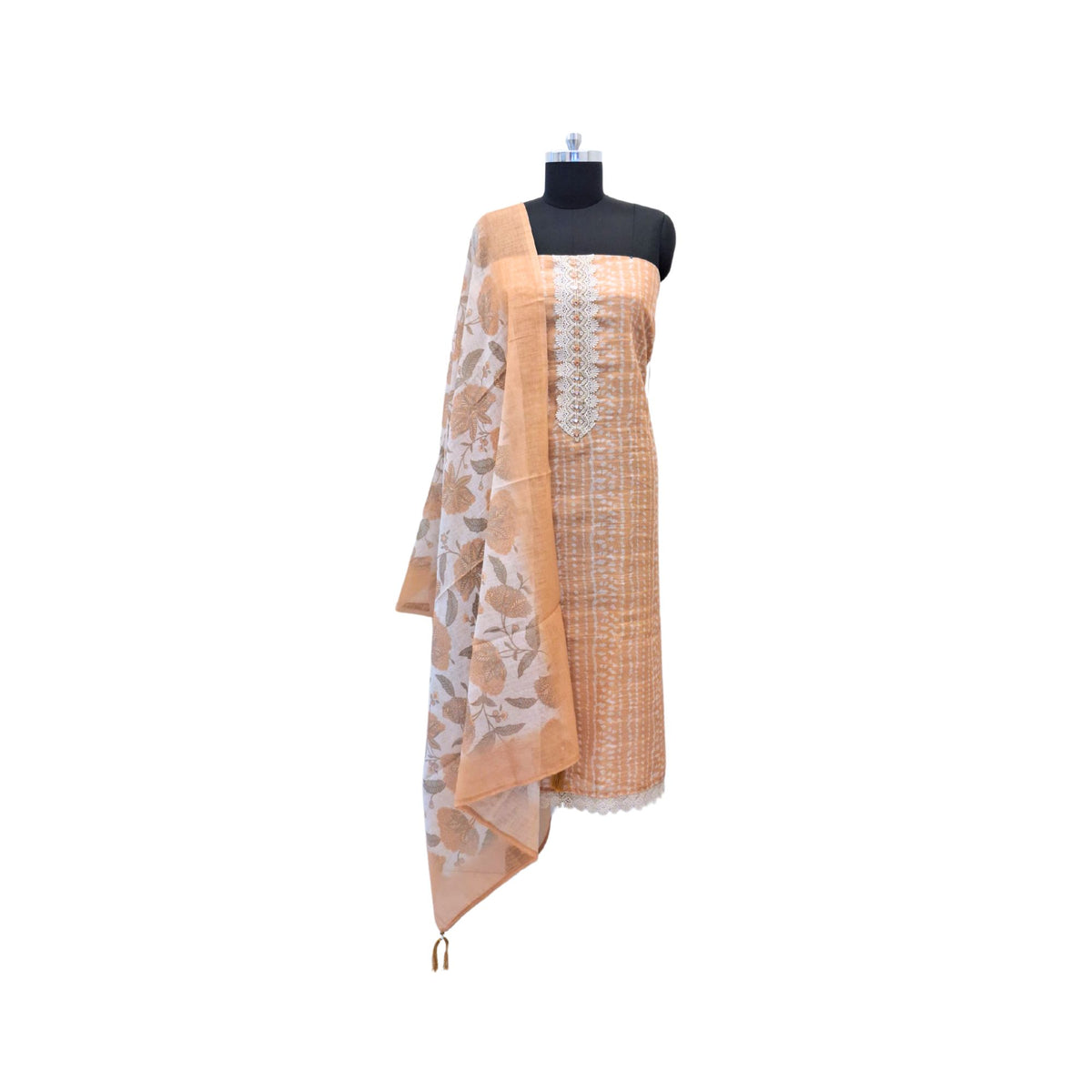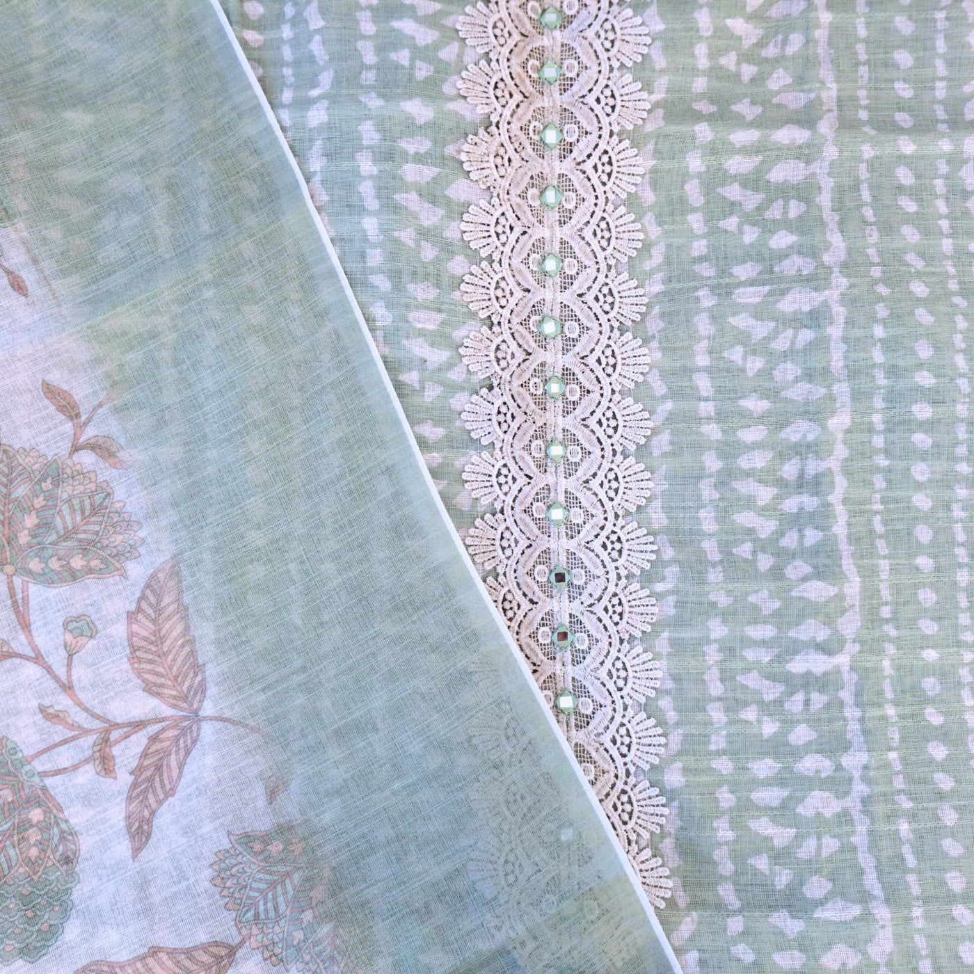 LINEN SUIT WITH MIRROR AND CROCHET WORK