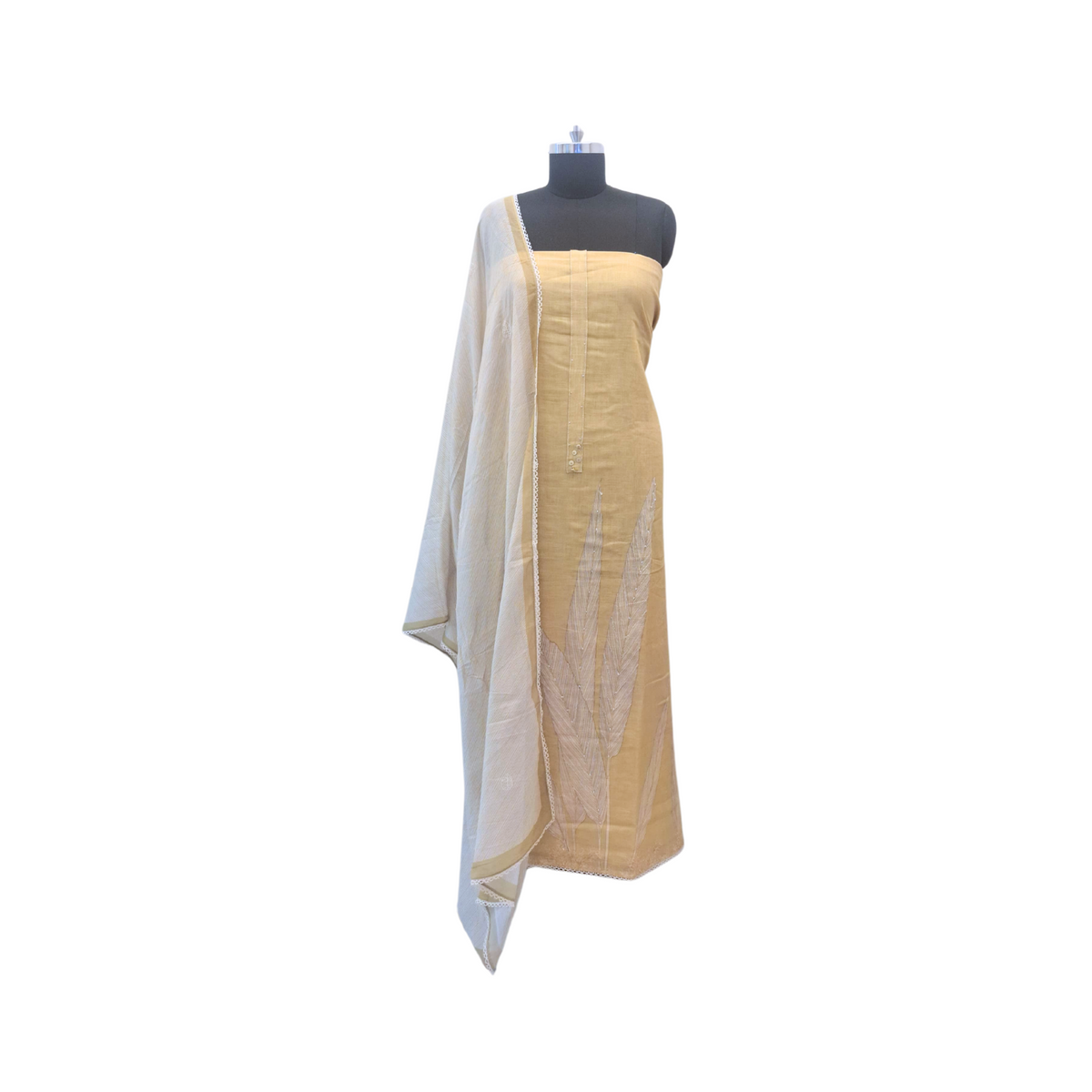 LINEN SUIT WITH NATURAL LEAF MOTIF