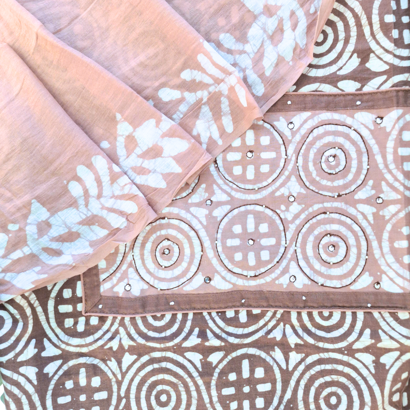 MUD BROWN BATIK PRINT COTTON UNSTITCHED SUIT