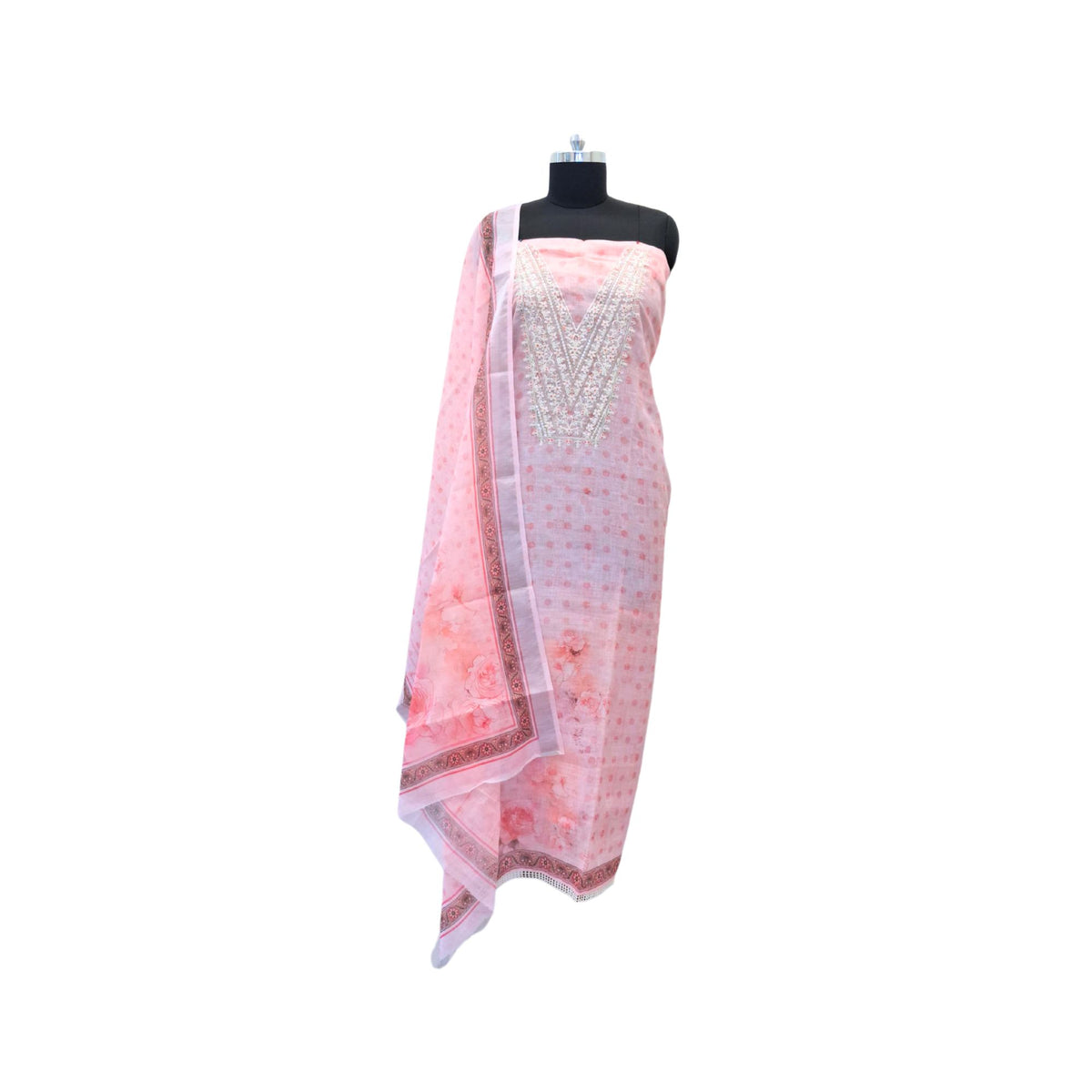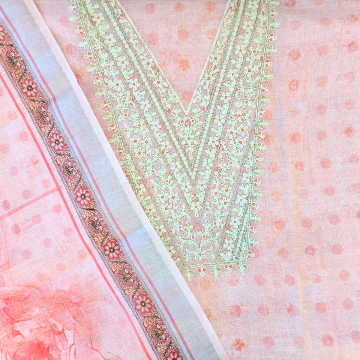 PRINTED LINEN SUIT WITH CORD WORK, PAIRED WITH LINEN FLORAL BORDER DUPATTA