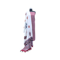 RED FLORAL PRINT COTTON UNSTITCH SUIT