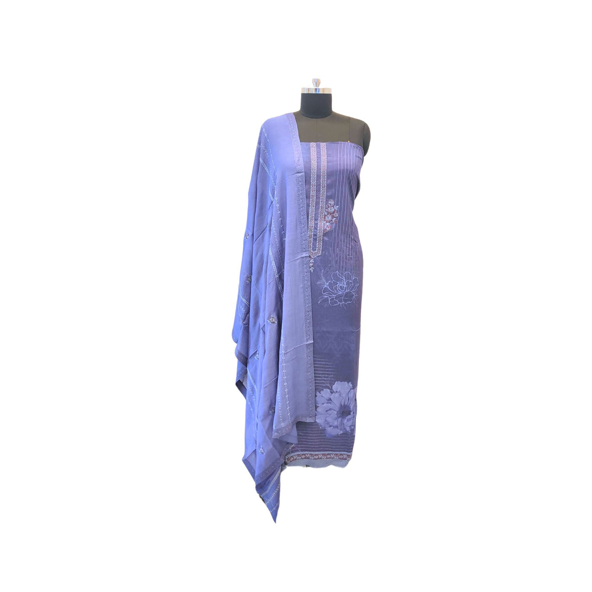 SOFT MUSLINE SUIT WITH MACHINE EMBROIDERY