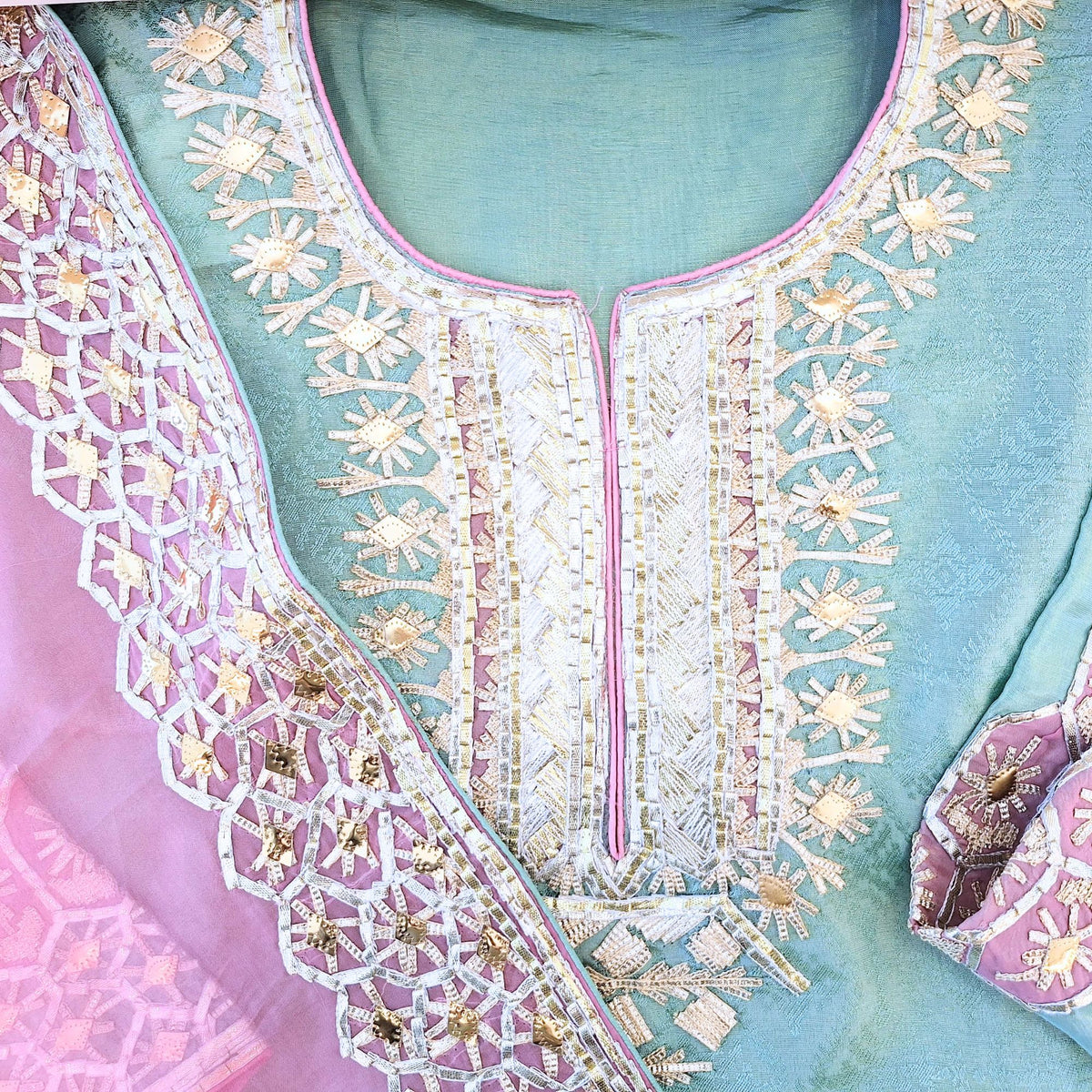 TISSUE SEMI STITCH SUIT WITH GOTA PATTI WORK