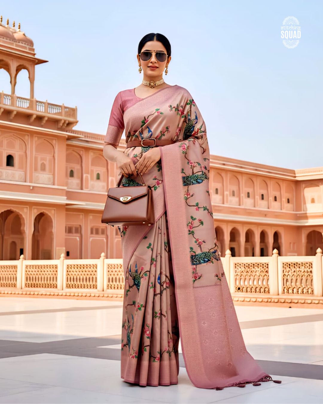TISSUE SILK SAREE HIGHLIGHT WITH PEACOCK FIGURES