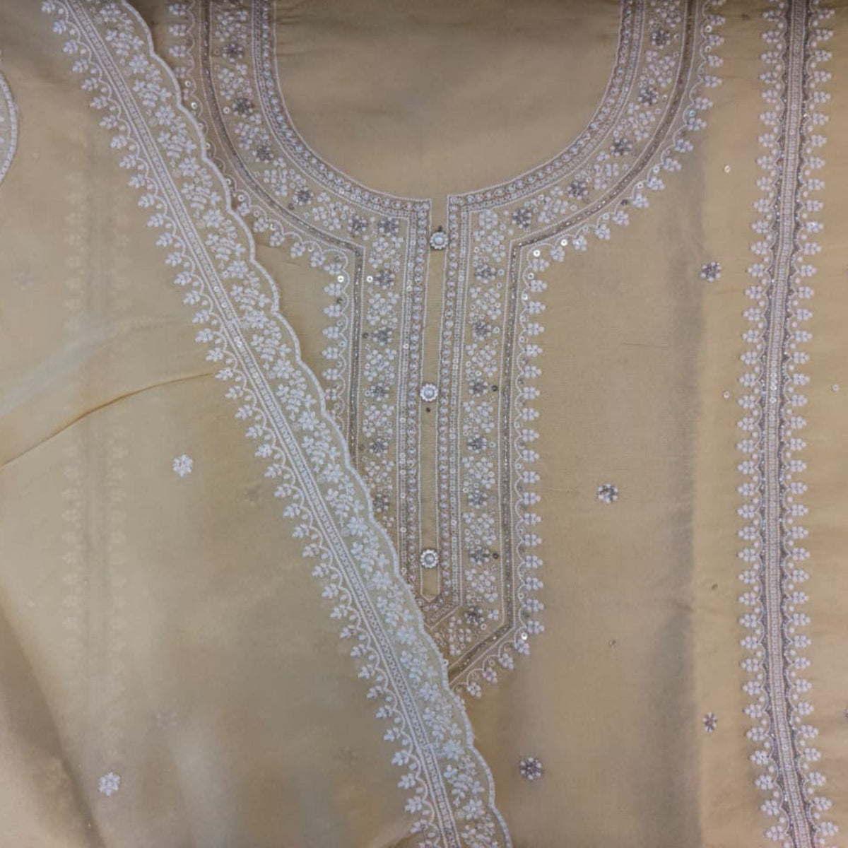 TISSUE UNSTITCH SUIT,HIGHLIGHT WITH PRE STRUCTURE EMBROIDER NECK